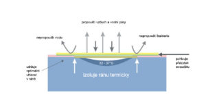 - zajišťuje tepelnou izolaci rány, čímž umožňuje udržet v ráně stálou teplotu, a urychluje proces hojení,