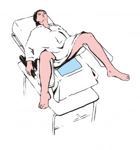 Použijeme roušku ze setu pro obalení nohou pacientky pro zajištění sterility operačního pole.